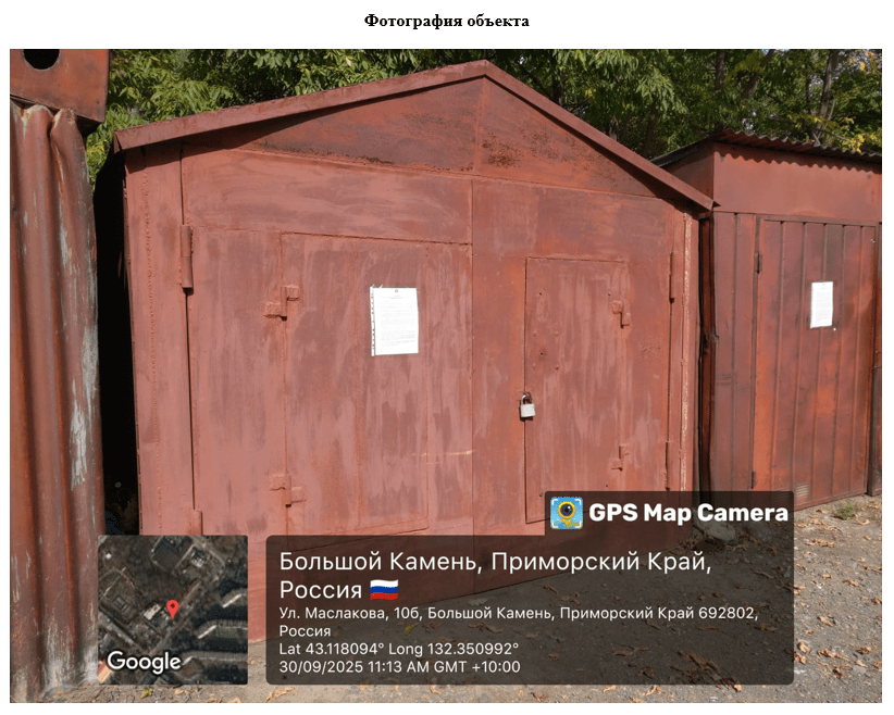 По результатам осмотра установлено, что на данной территории самовольно установлен объект движимого имущества — металлический гараж (порядковый номер на схеме № 3).