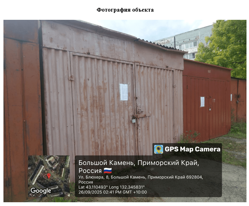 По результатам осмотра установлено, что на данной территории самовольно установлен объект движимого имущества — металлический гараж (порядковый номер на схеме № 13).