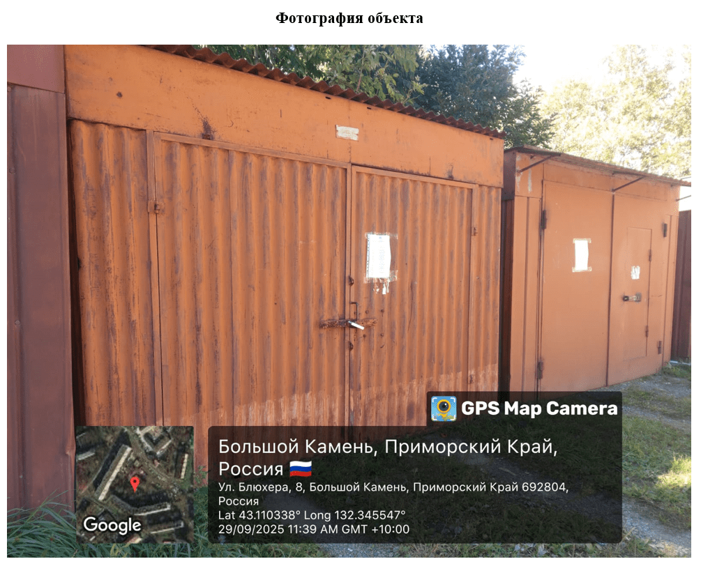 По результатам осмотра установлено, что на данной территории самовольно установлен объект движимого имущества — металлический гараж (порядковый номер на схеме № 27).