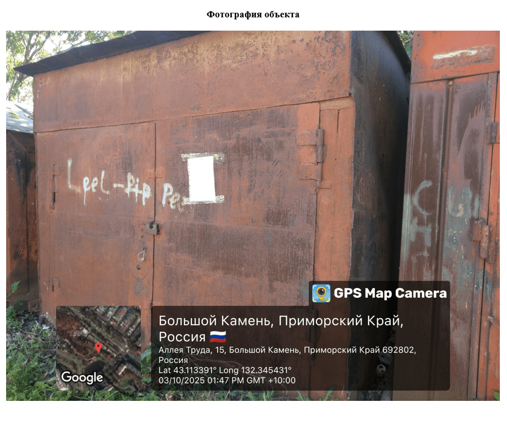 В соответствии с Земельным кодексом Российской Федерации, Федеральным законом от 06.10.2003 № 131-ФЗ «Об общих принципах организации местного самоуправления в Российской Федерации», постановлением администрации городского округа Большой Камень от 13.08.2025 № 2261 «Об утверждении Порядка освобождения самовольно занятых земельных участков, находящихся в муниципальной собственности городского округа Большой Камень, земельных участков, государственная собственность на которые не разграничена, и переноса иных объектов движимого имущества на территории городского округа Большой Камен»., предлагаем добровольно, в срок до «31» октября 2025 года: