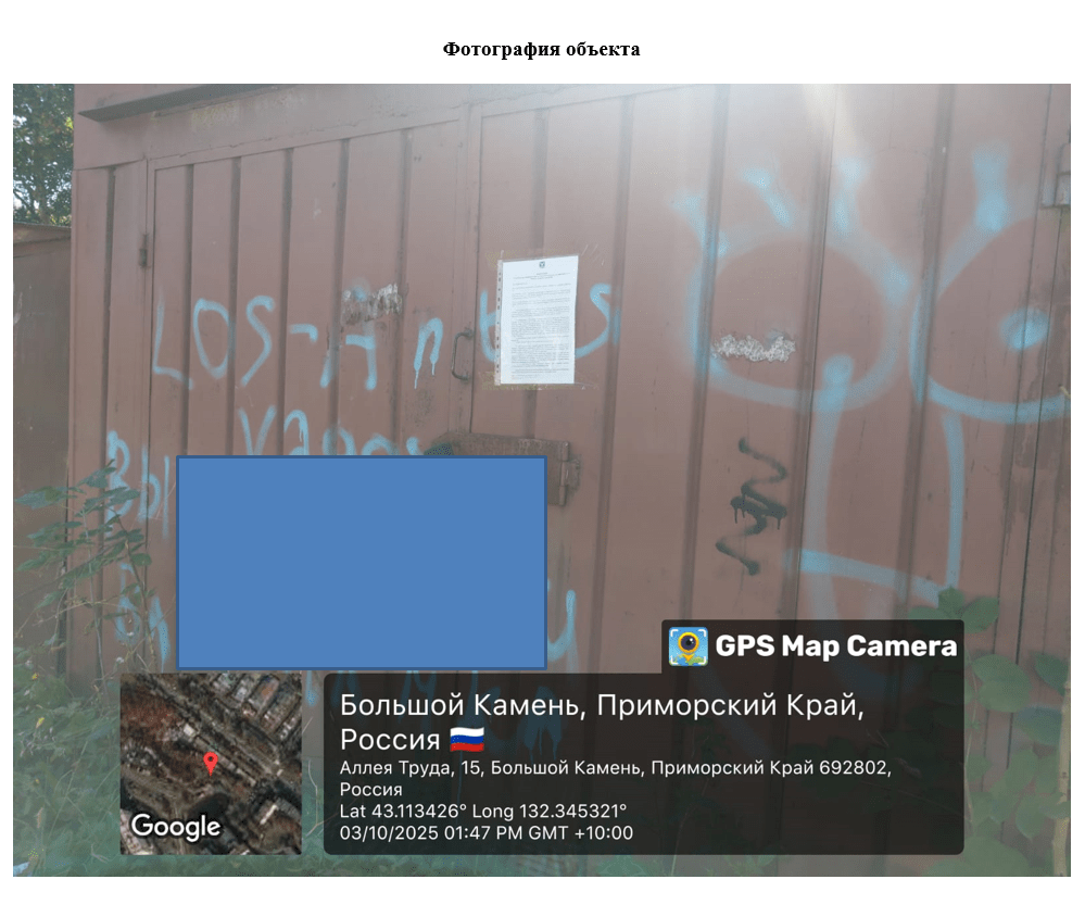 В соответствии с Земельным кодексом Российской Федерации, Федеральным законом от 06.10.2003 № 131-ФЗ «Об общих принципах организации местного самоуправления в Российской Федерации», постановлением администрации городского округа Большой Камень от 13.08.2025 № 2261 «Об утверждении Порядка освобождения самовольно занятых земельных участков, находящихся в муниципальной собственности городского округа Большой Камень, земельных участков, государственная собственность на которые не разграничена, и переноса иных объектов движимого имущества на территории городского округа Большой Камен»., предлагаем добровольно, в срок до «31» октября 2025 года: