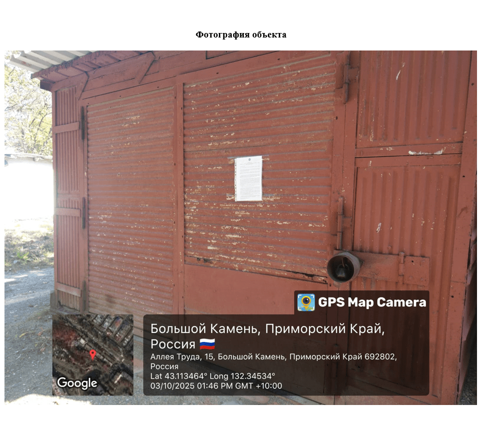 В соответствии с Земельным кодексом Российской Федерации, Федеральным законом от 06.10.2003 № 131-ФЗ «Об общих принципах организации местного самоуправления в Российской Федерации», постановлением администрации городского округа Большой Камень от 13.08.2025 № 2261 «Об утверждении Порядка освобождения самовольно занятых земельных участков, находящихся в муниципальной собственности городского округа Большой Камень, земельных участков, государственная собственность на которые не разграничена, и переноса иных объектов движимого имущества на территории городского округа Большой Камен»., предлагаем добровольно, в срок до «31» октября 2025 года: