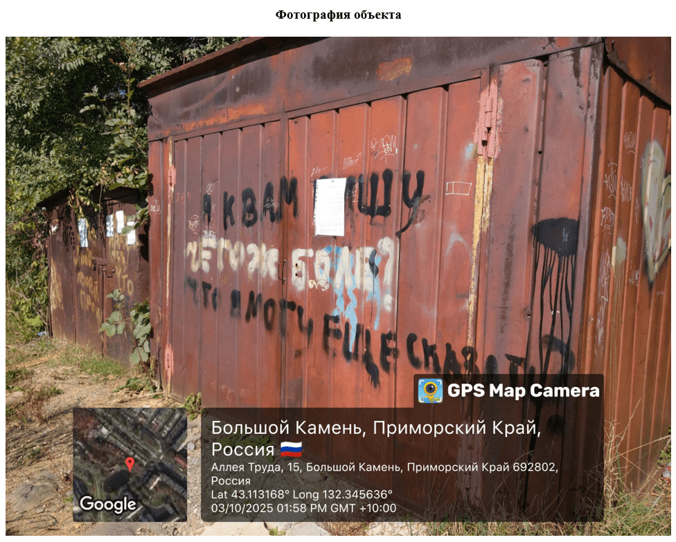 В соответствии с Земельным кодексом Российской Федерации, Федеральным законом от 06.10.2003 № 131-ФЗ «Об общих принципах организации местного самоуправления в Российской Федерации», постановлением администрации городского округа Большой Камень от 13.08.2025 № 2261 «Об утверждении Порядка освобождения самовольно занятых земельных участков, находящихся в муниципальной собственности городского округа Большой Камень, земельных участков, государственная собственность на которые не разграничена, и переноса иных объектов движимого имущества на территории городского округа Большой Камен»., предлагаем добровольно, в срок до «31» октября 2025 года:
