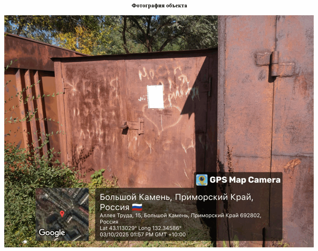 В соответствии с Земельным кодексом Российской Федерации, Федеральным законом от 06.10.2003 № 131-ФЗ «Об общих принципах организации местного самоуправления в Российской Федерации», постановлением администрации городского округа Большой Камень от 13.08.2025 № 2261 «Об утверждении Порядка освобождения самовольно занятых земельных участков, находящихся в муниципальной собственности городского округа Большой Камень, земельных участков, государственная собственность на которые не разграничена, и переноса иных объектов движимого имущества на территории городского округа Большой Камен»., предлагаем добровольно, в срок до «31» октября 2025 года: