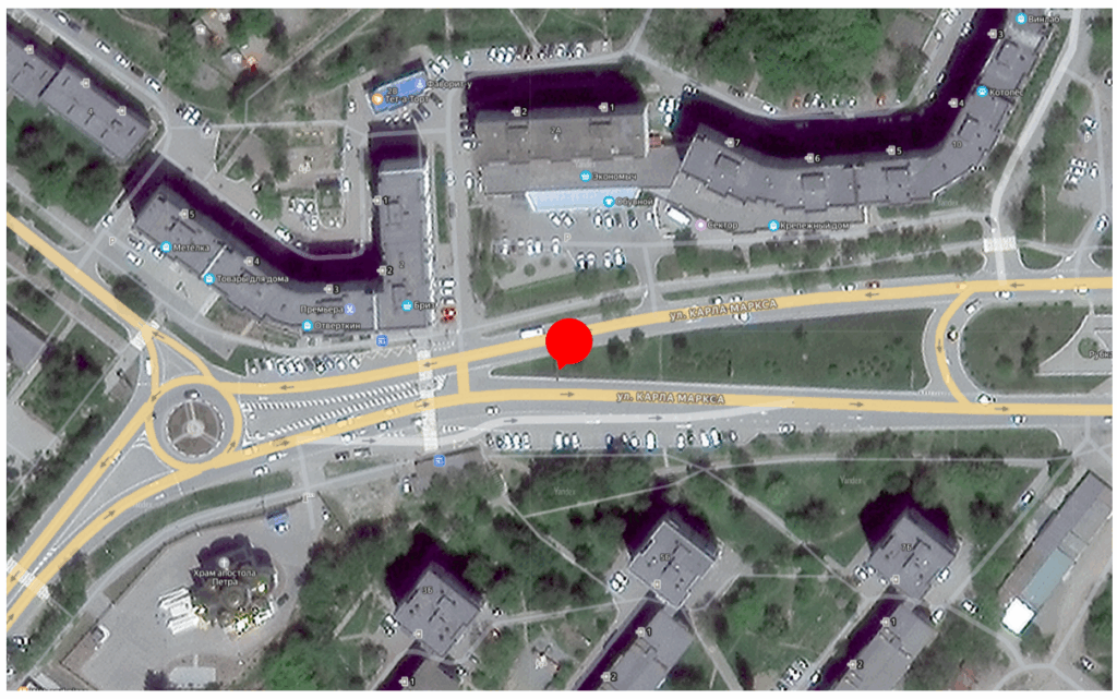 Место размещения уведомления: г. Большой Камень, примерно в 40 м на юго-восток от ул. Академика Крылова, 2.