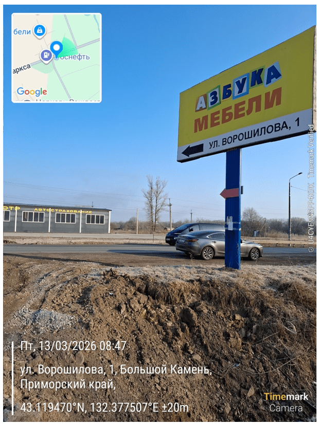 Должностным лицом управления архитектуры и градостроительства администрации городского округа Большой Камень выявлен факт установки и эксплуатации рекламной конструкции без предусмотренного законодательством разрешения на ее установку и эксплуатацию.