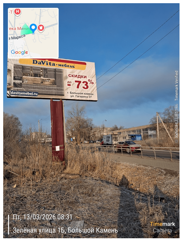 Должностным лицом управления архитектуры и градостроительства администрации городского округа Большой Камень выявлен факт установки и эксплуатации рекламной конструкции без предусмотренного законодательством разрешения на ее установку и эксплуатацию.