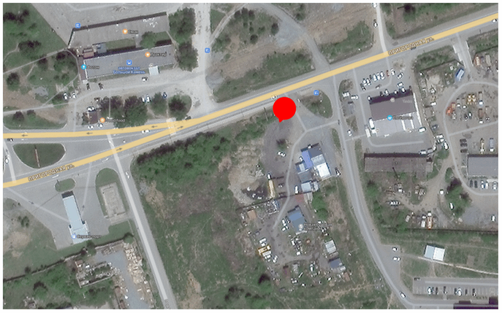 Место размещения уведомления: г. Большой Камень, примерно в 125 м на юго-восток от ул. Зеленая 1б.